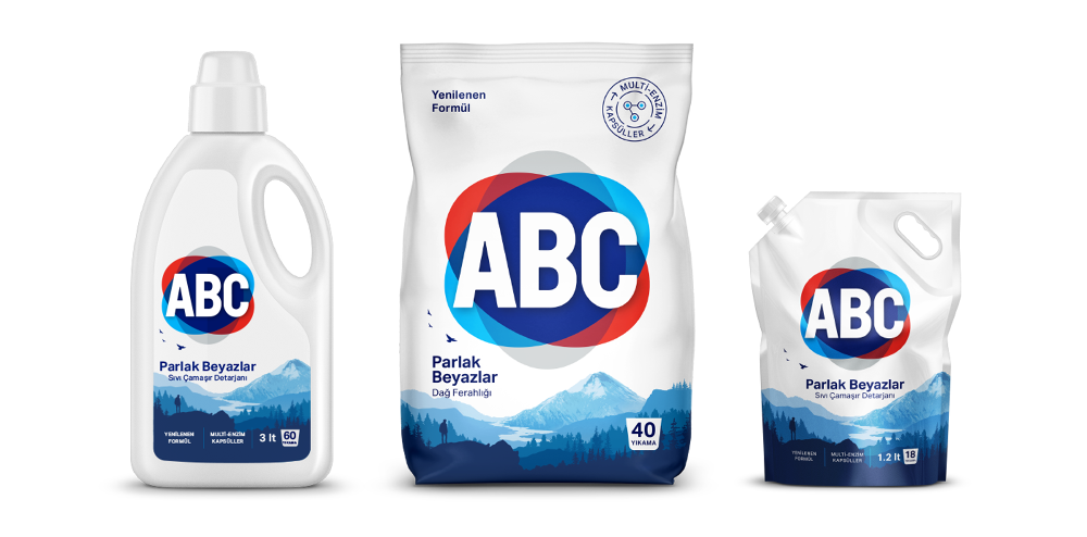 ABC Detergent founded in 1972 (formerly Baser Kimya) to manufacture household chemicals for both domestic and international markets. Before the brand's 35th anniversary, the ABC brand team expected to create a more legible, contemporary brand identity approach for the next generations.